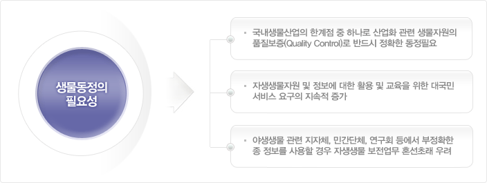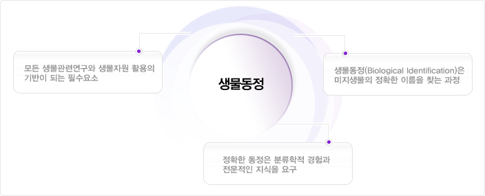 생물동정은 분류학적 연구와 같은 기초적인 생물학 연구뿐만 아니라 특정 생물에 대한 유전분석, 생리현상 파악, 유용물질추출 등 다양한 응용분야에서도 실험재료로 활용되어지는 생물의 분류군을 정확하게 선택하기 위한 필수적인 과정입니다. 그러나 정확한 생물동정을 위해서는 분류학에 대한 폭넓은 지식과 해당분류군에 대한 풍부한 경험을 바탕으로 한 연구지식을 요구하므로 비전문가로서는 상당히 힘들고 빈번한 오류를 발생시킬 수 있습니다.