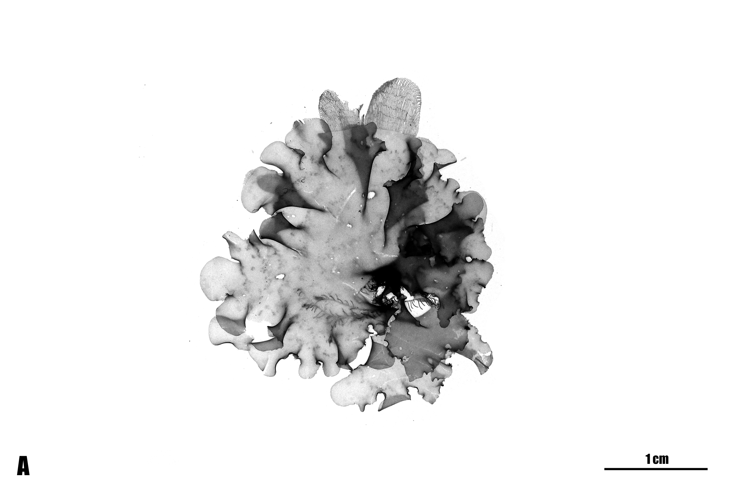 수심 5~8m의 조하대 암반 위에 착생하는 홍조류이다. 식물체는 막질이며, 물속에서는 하얀색으로 보이고 형광을 내며 꾸불꾸불하고 뭉쳐난다. 식물체 아랫부분의 모서리에서 실 모양의 뿌리를 내어 바위에 붙어 자란다. 그물조직은 아주 약하게 발달하며, 특히 가로연결줄의 발달이 미약하고 그물조직 앞부분의 가장자리는 좁은 띠 모양으로 돌기가 없다. 막조직은 2~4겹의 세포로 이루어져 있다. 사분포자낭은 막조직에 4~8개씩 뭉쳐나며 공 모양이고 사변체분열을 한다. 제주도 함덕에 분포하는 한국 고유종이다. [저작재산권자]