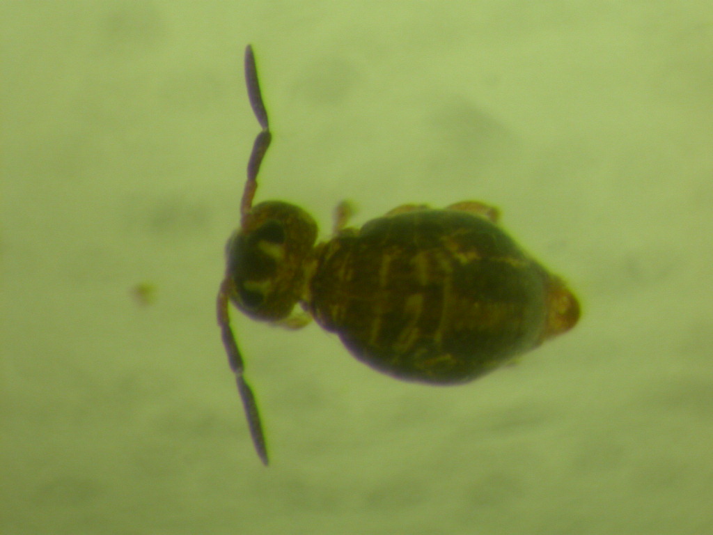 몸길이는 1.0mm 정도이다. 몸색은 보통 연한 노란색이며 항문생식절을 제외하고는 몸의 측면을 따라 검은색 무늬가 있다. 몸색에는 때로 변이가 있으나 모든 개체의 배 둘째마디에서 배 넷째마디까지 가로줄과 깔때기 모양의 무늬가 보인다. 정수리 부분에는 회색 무늬와 한 개의 검은 점이 보인다. 입 주위에는 4줄의 어두운 무늬가 있다. 배 다섯째마디에는 ‘H’자 모양의 커다란 흰색 무늬가 보인다. 더듬이는 연한 색을 띠나 끝 쪽으로 갈수록 어둡다. 도약기는 색이 없다. 더듬이 넷째마디는 분절되지 않는다. 배 다섯째마디는 앞의 큰 마디와는 분리되어 있다. 소나무와 대나무 군락의 낙엽층에서 서식한다. 경상북도, 전라북도 등에 분포하는 한국 고유종이다. [저작재산권자]