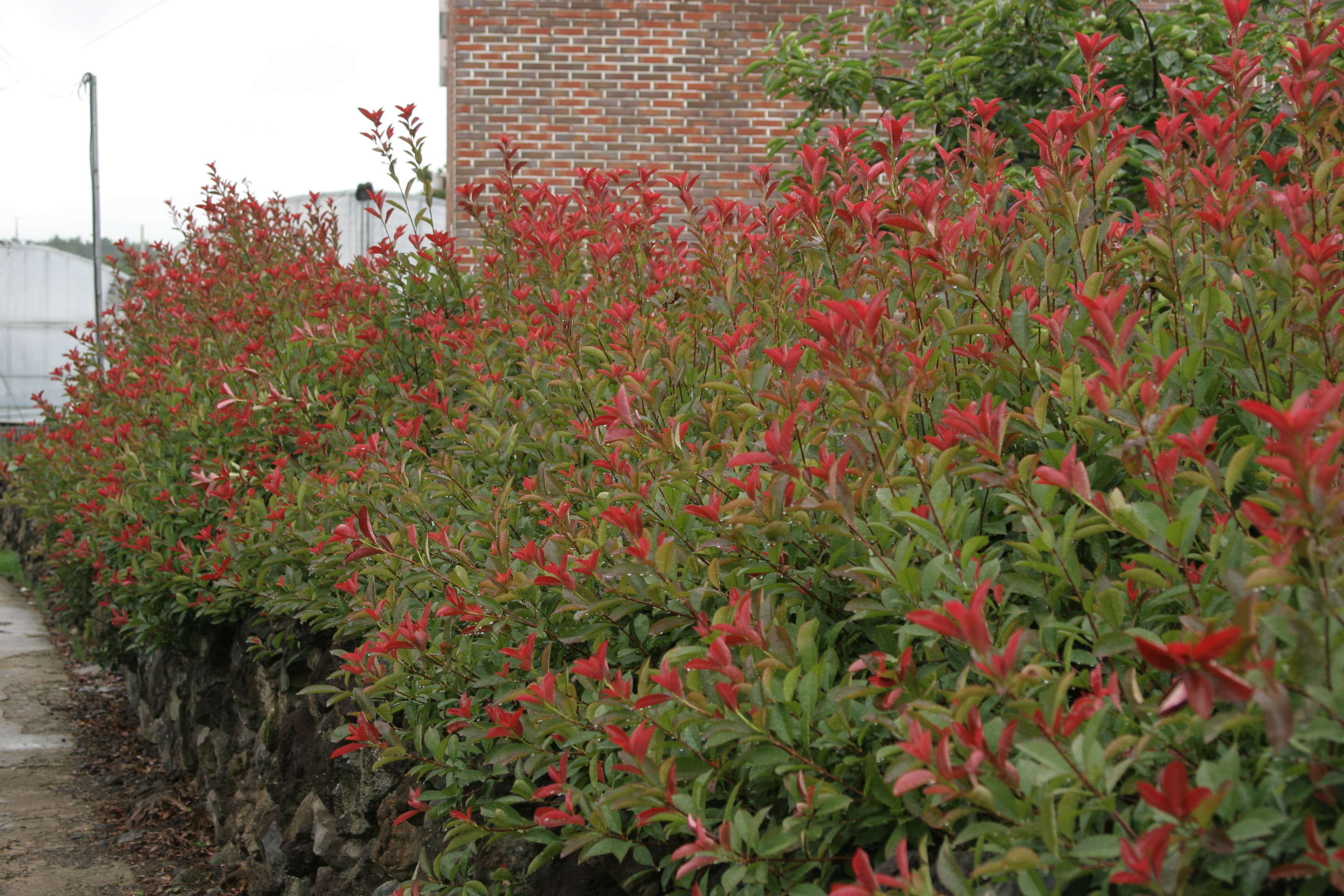 정원이나 화단에 관상용으로 식재하는 상록성 작은큰키나무로 높이 5~8m이다. 잎자루는 길이 10~17cm이다. 잎은 어긋나며 도피침상 타원형으로 길이 5~12cm, 폭 2.5~4.0cm이다. 잎 양 끝은 뾰족하고 가장자리에 좁고 예리한 톱니가 있다. 잎 앞면은 녹색이고 윤기가 흐르며 뒷면은 황록색이고 주맥이 두드러진다. 턱잎은 침형이고 일찍 떨어진다. 꽃은 5~6월에 피는데 햇가지 끝에 지름 7~13cm의 원추꽃차례에 달리며 흰색이다. 꽃받침통은 짧은 도원추형이다. 꽃받침잎은 삼각형이다. 꽃잎은 넓은 타원형 또는 원형이며 아래쪽에 솜털이 있다. 수술은 20개다. 암술대는 2개이며 아랫부분이 맞붙어 있고 흰털이 있다. 열매는 타원상 구형이고 지름 5mm쯤이며 10월에 붉게 익는다. 우리나라 남부지방에서 식재하며, 원산지는 타이완, 태국, 미얀마, 일본 혼슈 이남, 중국 남부 등이다. 잎의 모양이 상록성인 참나무과의 가시나무와 비슷하며 잎이 날 때 붉은색을 띠므로 홍가시나무라고 한다. 관상용, 생울타리용, 세공용으로 식재한다. 홍가시, 붉은순나무라고도 한다. [저작재산권자]