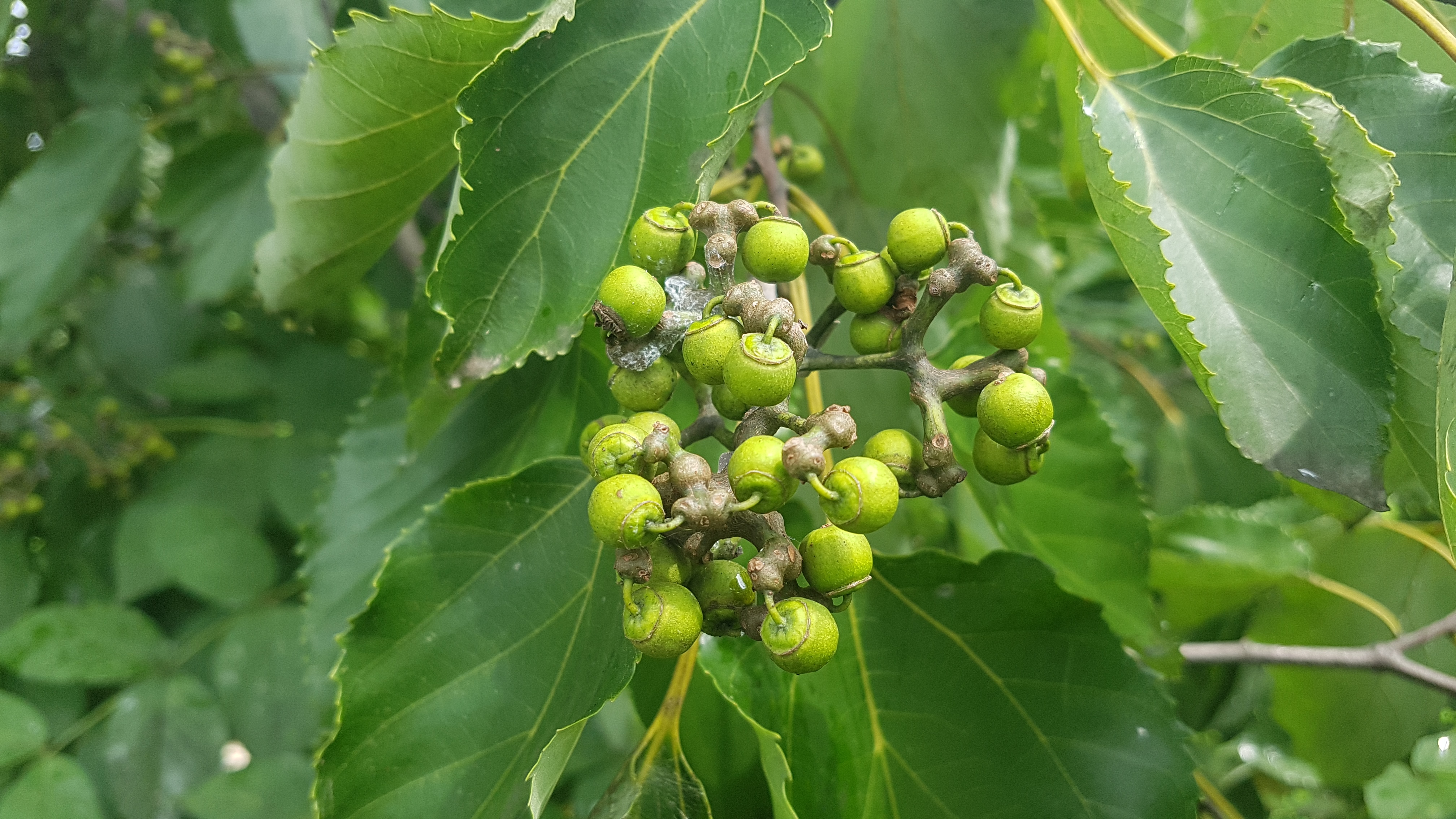 낙엽활엽수이다. 꽃은 6~7월 피며, 열매는 10월에 익는다. [3]
